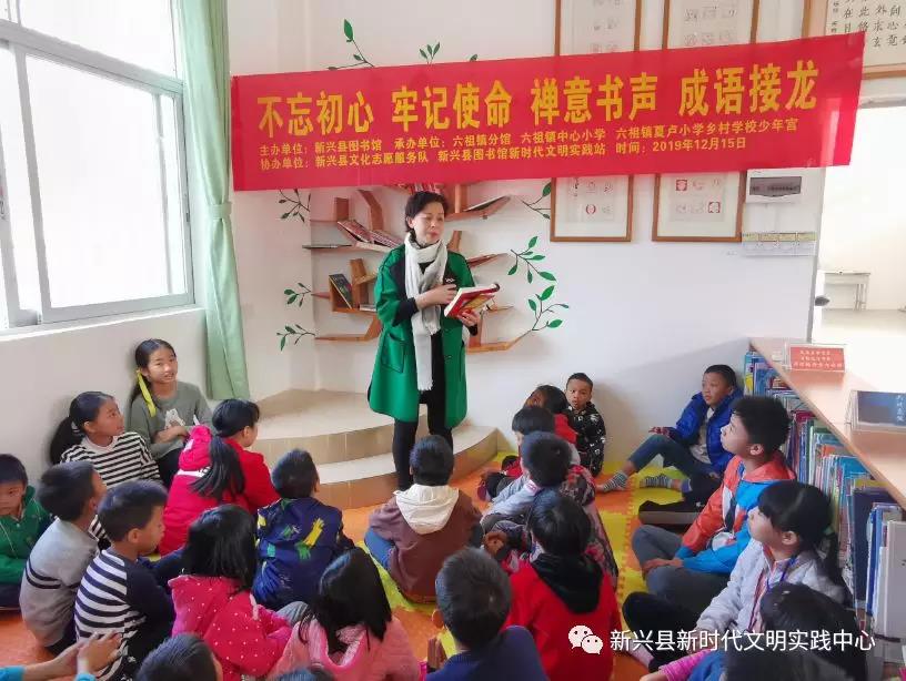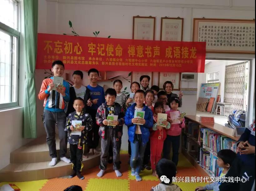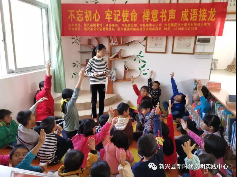 为引导青少年儿童自觉主动地学习、积累、运用成语;体会成语的魅力,以激发他们广泛阅读、积累成语的兴趣。12月15日,新兴县图书馆新时代文明实践站在六祖镇分馆举办了“不忘初心 牢记使命”禅意书声,成语接龙。