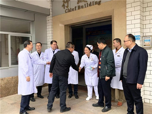 在新兴县人民医院,袁伙月与一线医护人员握手,对县人民医院过去一年取得的成绩予以充分肯定,并希望他们再接再厉,恪尽职守,以高度的责任心和饱满的工作热情,全力以赴做好春节期间医院的各项医疗护理和安全保障工作,做好随时应对各类突发公共事件的应急准备,确保医疗安全和生产安全。