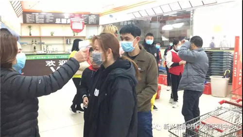 镇内超市要求进入人员必须从测量体温和佩戴口罩