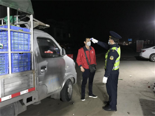 寒夜,几个忙碌的身影坚守在疫情防控第一线,对一个又一个往来车辆的人员进行体温检测把关,一遍又一遍询问往来车辆人员的途径信息,详细地登记着每一份资料,新兴县交通运输局执法一大队大队长梁世金同志就是这群防疫队伍中的一员。作为大队长的他亲赴防控检测一线,他主动到最偏远的地方守值寒冷的零晨班。由于天堂联合检疫检查站位于天堂高速出入口与国道G359的必经之路,车流量非常大,梁世金同志一站就是一整夜,检测体温、登记资料、解释劝告,高强度的工作及熬夜对身体及精神状态上都充满着挑战。