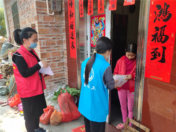 3月1日这天,可以看见这样一支队伍,她们手里提着一摞摞的书本在非雷村的村道上行走,正是非雷村的党员志愿者和社工。她们走村入户,送教材上门,将新课本分发到每一位学生手中,并仔细询问每位学生的线上学习情况,希望同学们能合理利用教材,加强自律,自主学习,与线上课程相结合,提高学习效率。