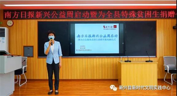 3月25日下午,云浮新兴公益周启动仪式暨为全县特殊贫困生捐赠平板终端活动,在云浮市新兴县环城中学举行。本次活动由南方日报、南方+、新兴县新时代文明实践中心联合主办。该公益周启动后,南方日报与新兴县新时代文明实践中心将定期联合开展品牌文明实践志愿服务活动,努力打通宣传群众、教育群众、关心群众、服务群众“最后一公里”。