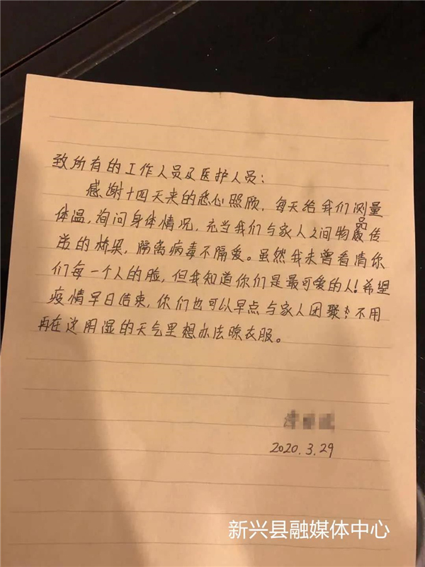 这些感谢信让奋战在新兴县集中隔离点的医护人员们深深感动。