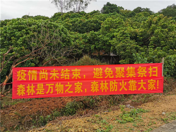 二把好宣传关,努力将护林防火工作“要我防”变为“主动防”。在重点路段和村组醒目处粘贴标语和悬挂横幅;入户发放宣传资料5000余份,对不在家住户,将宣传资料张贴在醒目处进行提醒,提倡群众“云祭祀”。