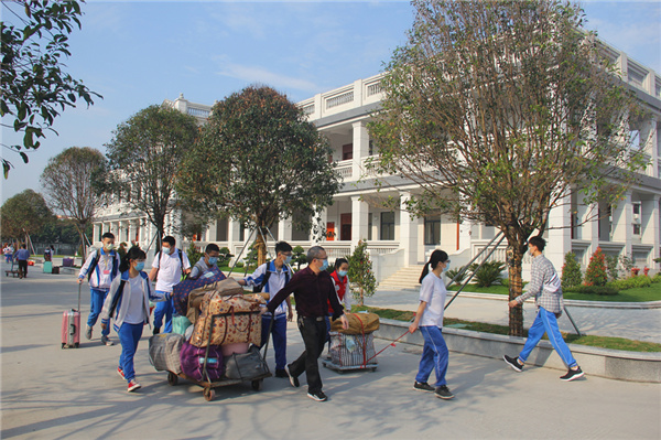 据悉,新兴县学生返校工作在各级领导的重视和各职能部门的密切配合下,早谋划,早部署,措施得力,管理到位,学生返校复课工作有条不紊。一是学生返校前,我县主要领导亲自挂帅,分管领导具体抓落实,召开各级各类会议,详细解读疫情防控指引,再动员再部署,明确职责,细化任务,确保各项工作万无一失。县委、县政府和市教育局主要领导及分管领导亲临学校督导检查,靠前指挥,现场办公,解决学校遇到的问题;二是县学生返校工作专班成员单位主动作为,积极配合,各司其职、各尽其责。学生返校前,县卫健局、县市场监督局、县公安局、县应急管理局、县工信局等单位多次到学校督查、指导、验收学生返校复学各项准备工作,并切实做好师生核酸检测、校园环境清洁消杀、校园周边治安环境整治、交通秩序维持、食堂食品监管、防控物资储备等工作。县治安大队、交警大队及各镇政府等在学生返校当天协助学校做好开校园交通管控。各中学所在地医院派出兼职健康副校长或医务人员驻守学校,配合做好联防联控工作。县教育局组织四个督查组,由局领导带队分赴全县各中学,督导学生返校复课工作三是县宣传部门坚持正确的舆论导向,传播正能量,赢得了社会各界大力支持,不少爱心企业、社会组织和热心人士纷纷给学校捐赠口罩、测温仪等疫情防控物资。广大学生家长也积极配合,给孩子配备口罩、消毒液等物品,并教育孩子切实做好自我防护;四是各中学周密布置,严格管理,演练到位,各个岗位教职工都熟悉防控疫情工作流程,有序组织学生返校各项工作。学生返校首日,各中学全面开展“复学第一课”和“第一堂思政课”活动,对学生进行疫情防控知识教育和安全防范教育,增强学生的自我防护意识和技能。注意用好疫情防控故事深入开展爱国主义教育,贯彻落实《新时代爱国主义教育纲要》,切实强化思想引领工作,认真落实意识形态工作责任制,坚持正确的政治方向和价值导向。