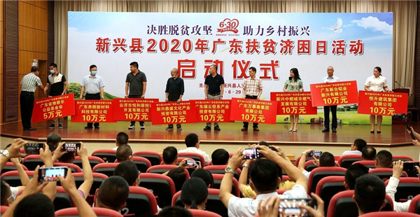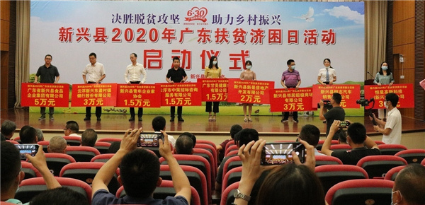 在第11个“广东扶贫济困日”即将到来之际, 6月29日下午,新兴县举行2020年“广东扶贫济困日”活动启动仪式。新兴县委书记王巍,县委副书记、县长袁伙月,县人大常委会主任陈就庆,县政协主席梁国华等县四套班子领导,县委、县政府机关大院全体干部职工,爱心企业代表等约150多人参加活动,并进行了现场捐款献爱心活动。
