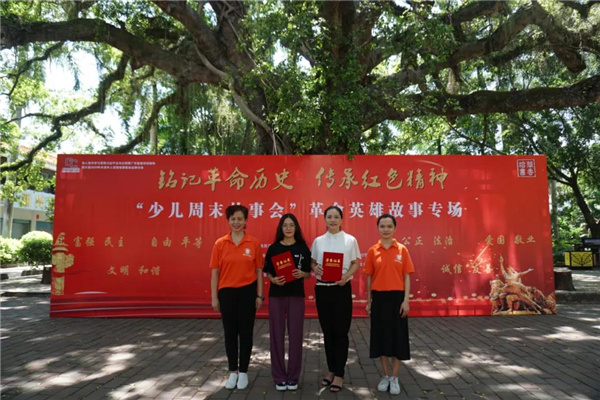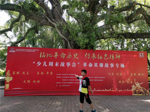 7月11日上午,新兴县2020年未成年人思想道德建设活动之“少儿周末故事会”革命英雄故事专场在新兴县图书馆大门口大榕树底下举办。