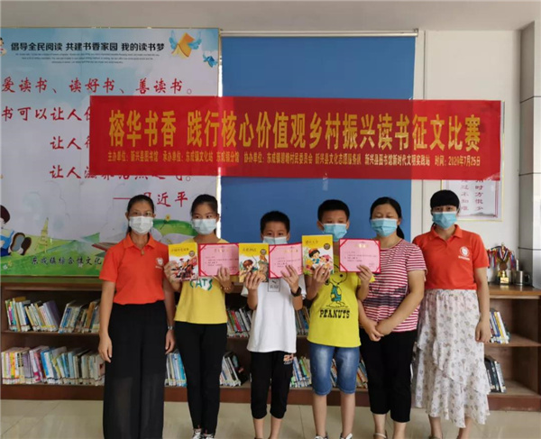 为积极响应国家乡村振兴战略,打造社会主义新农村,建设美丽乡村,新兴县图书馆与东成镇文化站联合举办榕华书香 践行核心价值观乡村振兴读书征文比赛活动。参加本次活动有东成镇党委委员、副镇长苏子洪,东成镇文化站站长梁建华,新兴县图书馆馆长杨琪先等领导和志愿者们。