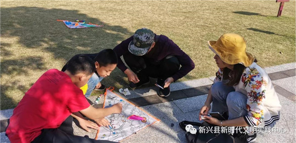 孩子们尽情地发挥自己的想象力,心里构思着自己喜欢的风筝图案、颜色;或坐在地上、或趴着策划,有的给公主画上美丽的裙子、有的画机器猫、有的画超人,有的画大蝴蝶、有的画大金鱼……几位童心未泯的家长,也纷纷参与其中,认真描绘出自己心中的绚丽色彩。