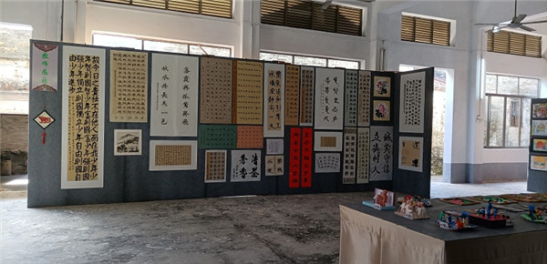 首先,全体嘉宾领导和师生在中心小学展示厅参观六祖镇师生艺术作品展。所展出的200多件师生作品以体现家乡四季美景和乡土风情为主题,通过版画、书法、剪纸、陶艺、摄影等形式和各学校特色课程的融合,展现了生活中的点滴,表达了六祖镇师生对家乡的热爱、对美好生活的向往,更展示了六祖镇新农村建设的成果和本土特色文化。