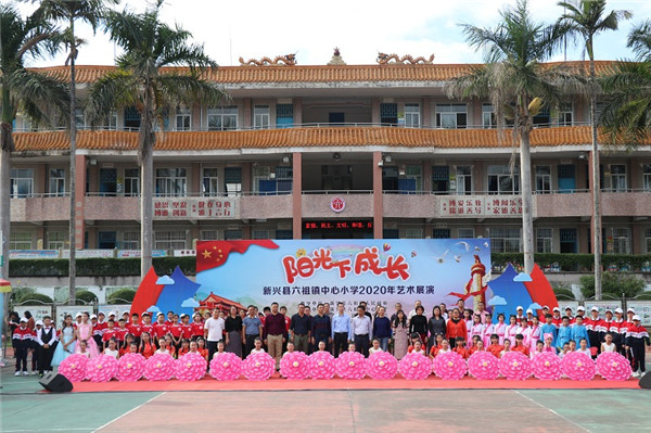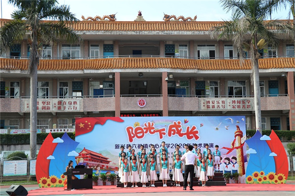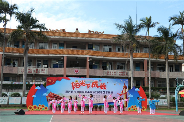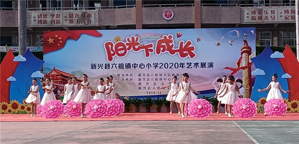 11月13日下午,由六祖镇中心小学、新兴县文化馆、六祖镇文化站联合主办的2020年“阳光下成长”艺术展演活动在六祖镇中心小学举行 ,副县长梁志莲,县教育工委副书记、教育局党组成员刘瑞坤,六祖镇党委委员冯二楷,新兴县文化馆馆长苏剑美等领导莅临指导,镇各小学校长、面上小学部分师生代表及中心小学全体师生600多人参加展演活动。