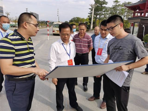 潘耀才一行来到县城区振兴二路东段道路景观升级改造工程,详细了解工程建设情况。