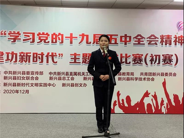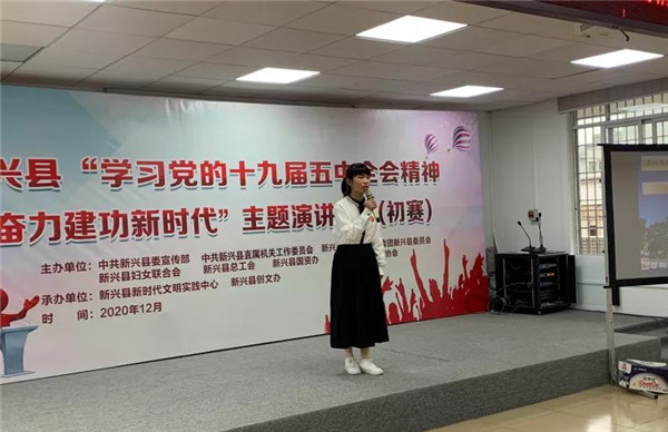 为深入学习宣传贯彻党的十九届五中全会精神以及习近平总书记出席深圳经济特区建立40周年庆祝大会和视察广东重要讲话、重要指示精神,12月15日,由县委宣传部、县委直工委、县教育局、团县委、县妇联、县总工会、县国资办、县科协联合举办的新兴县“学习党的十九届五中全会精神,奋力建功新时代”主题演讲比赛初赛在县新时代文明实践中心举行。