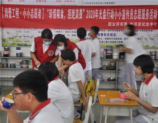 云浮市邓发纪念中学开展“珍惜粮食,拒绝浪费”2020年光盘行动小小宣传员志愿服务活动。