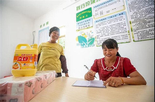 在云浮罗定牛角坝村,村民每月可根据日常生活垃圾分类投放、“门前三包”情况等方式获取相应积分,并凭累计积分在垃圾分类积分超市兑换一些日常生活用品。