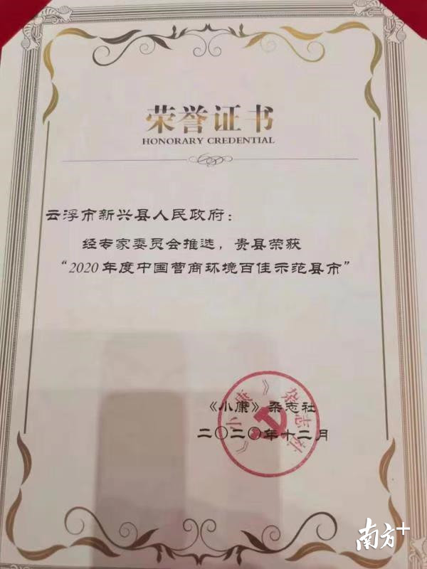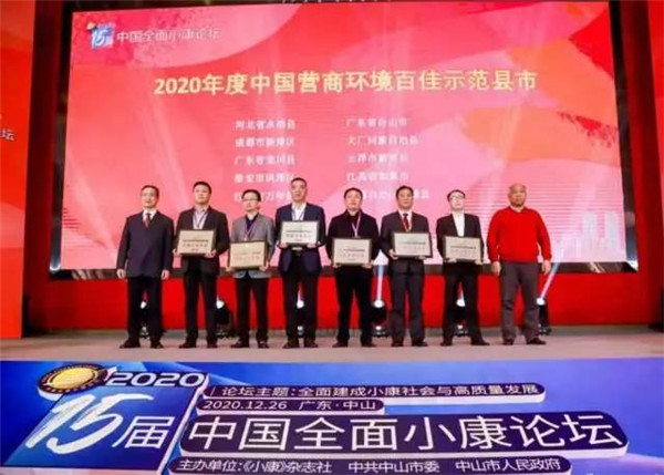 12月26日晚,备受外界关注的2020第十五届中国全面小康论坛,在广东省中山市举行,2020第十五届中国全面小康论坛颁奖盛典也同步拉开帷幕。在学术界、企业界及文化科技界等各界人士的见证下,“2020年度中国营商环境百佳示范县市新鲜出炉,云浮新兴县名列榜单。新兴县委常委、常务副县长曾广伟代表新兴县出席活动,并接受颁奖。