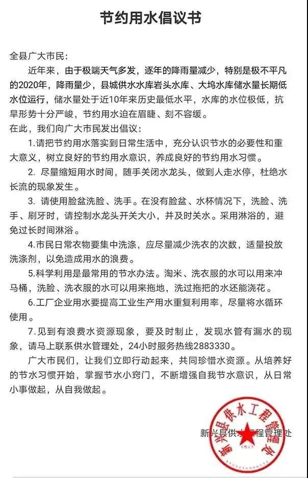 新兴水库水位极低,节约用水刻不用缓!