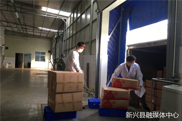 2月3日,记者在温氏佳味公司看到,工作人员正在忙碌装货,准备将一箱箱的温氏熟食鸡分别运送到县人社局慰问现场和各大企业。紧随着货车来到县人社局慰问活动现场,慰问组将温氏熟食鸡礼包、超市消费劵等节日用品陆续派发给留在新兴过年的外来务工人员。