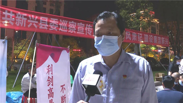 侯晓平(新兴县监委委员):"这个是反腐倡廉、正风肃纪的,这个是惩治(涉)黑(涉)恶腐败的,假如在你们生活中,有发现中共党员或者公职人员有违纪违法行为的,可以主动向我们联系。"