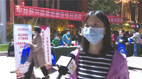 市民:"这个活动挺好的,来参加还有小礼品拿,里面有口罩,进来时也要求戴口罩的。参加这样的活动感觉全面从严治党是真正落实了,并不是口头说说而已,也加深了我们对纪检监察和巡察(的了解),他们都是在办实事,并不只是新闻上说说而已,是真的在我们群众身边做实事,真的挺好的。"