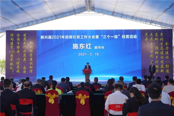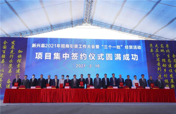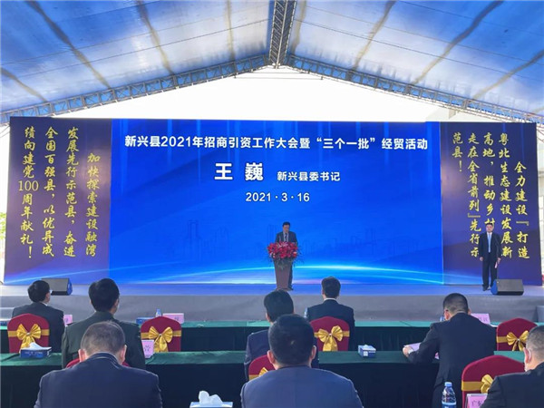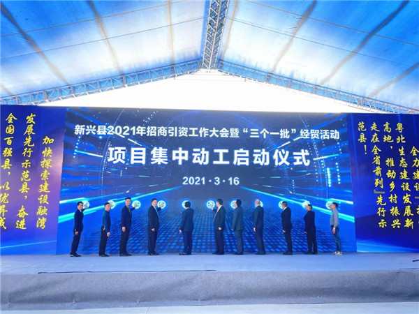 期间,分别举行了新兴县2021年招商引资工作大会暨“三个一批”经贸活动项目落户签约仪式、集中动工启动仪式以及集中投产启动仪式。 据了解,此次活动,我县新签约项目8个,计划总投资约65亿元;新动工项目8个,计划总投资约40亿元;新投产项目8个,计划总投资约36亿元;涉及冷链物流、生物制品、高新材料、机械设备、智能家居、电子、五金等多个领域。这些项目的签约、动工、投产,将为推动我县探索建设融湾发展先行示范县,实现在提质增效中加快高质量发展注入澎湃活力与强大动力。