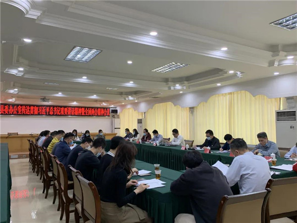 3月17日上午,县委办公室召开全体干部会议,传达贯彻习近平总书记重要讲话精神暨全国两会精神会议,深入学习习近平总书记在全国两会期间发表的一系列重要讲话精神,以及省委、市委、县委的学习贯彻会议精神,引领全体干部统一思想,自觉带头立足新发展阶段、贯彻新发展理念,服务好全县高质量融湾发展,以优异成绩迎接建党100周年。