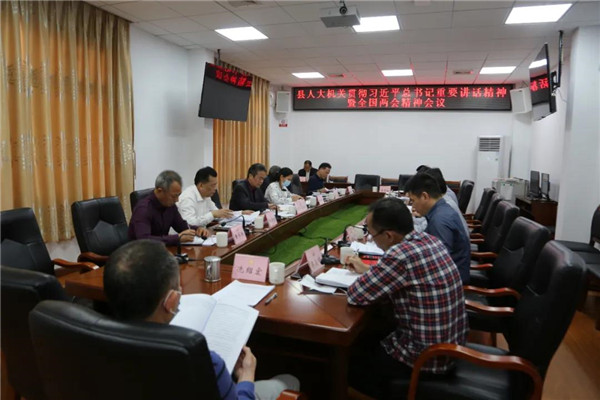 3月16日下午,县人大常委会召开传达学习贯彻习近平总书记重要讲话精神暨全国两会精神会议。