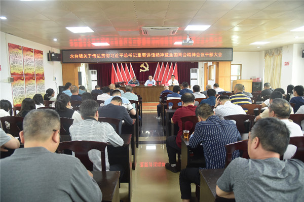 我县各镇也迅速召开干部大会,传达学习贯彻习近平总书记重要讲话精神暨全国两会精神。