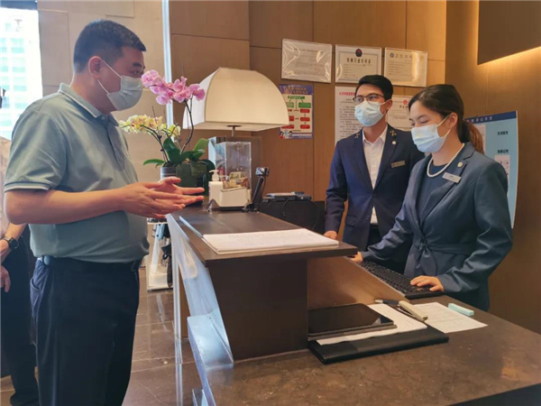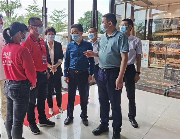 陈哲江一行先后来到昌大昌超市、喜来登酒店、明基水产,认真查看消防设备设施,详细了解食品安全保障、员工安全教育培训、疫情防控、企业设施设备建设、安全管理制度落实等情况。
