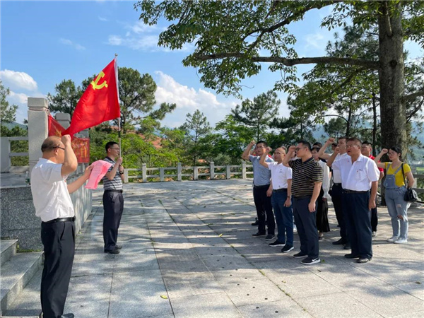 在蕉山革命烈士陵园纪念碑前,参加活动的全体党员整齐列队、肃穆静立,大家怀着无比崇敬的心情瞻仰烈士纪念碑、重温入党誓词、敬献花束、瞻仰蕉山革命烈士纪念馆、参观党史学习红色文化主题公园等,表达对革命先烈最崇高的敬意。期间,县委宣传部直属机关党委书记姚剑平向参加活动的党员们讲党课,重温党带领人民艰苦奋斗的峥嵘岁月,感悟坚韧不拔的品格、历久弥新的革命精神。