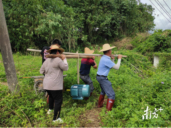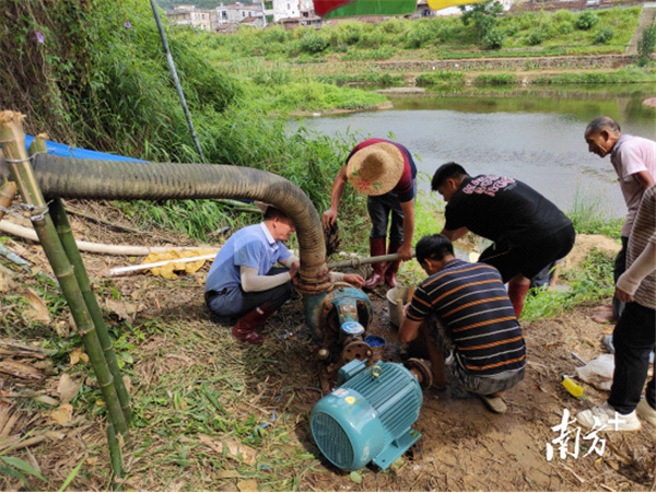 在了解村内群众也有这样的烦恼后,红光社区党支部书记罗松标马上组织“两委”干部商讨解决办法,集思广益,对从哪里借抽水机器、从哪里抽水、供给到什么地块、抽水时间点等问题进行了讨论。在簕竹镇党委、政府的协调下,从县应急部门借来了抽水机器。同时,罗松标安排相关人员和机器对灌溉水渠进行修复。