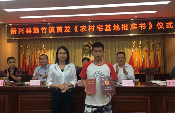 6月23日下午,我县首本《乡村建设规划许可证》和《农村宅基地批准书》在簕竹镇发放,标志着该镇农村宅基地管理与改革工作走在全县前列,为全县推广该项工作提供“簕竹样本”。县人大常委会副主任陈丽兴参加首发仪式。