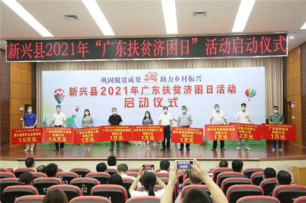 今年6月30日是第12个“广东扶贫济困日”。今天上午,我县在县委县府大楼大会堂举行仪式,启动主题为“ 巩固脱贫成果 助力乡村振兴”的2021年“广东扶贫济困日”活动并进行现场捐款,共捐得款项1377.3907万元,再创新高。县委书记王巍,县委副书记、县长陈哲江,县人大常委会主任陈就庆,县政协主席梁国华等县四套班子领导参加启动仪式。