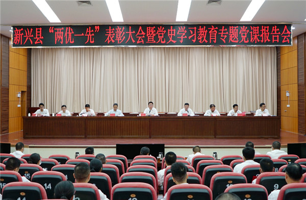 在即将迎来中国共产党成立100周年之际,6月29日上午,云浮市召开“两优一先”表彰大会暨党史学习教育专题党课报告会,我县在县委县政府大楼大会堂组织收看收听,并召开新兴县“两优一先”表彰大会暨党史学习教育专题党课报告会,表彰了全县优秀共产党员、优秀党务工作者和先进基层党组织。县委书记、县委党史学习教育领导小组组长王巍出席表彰大会并作党史学习教育专题党课报告。县委副书记、县长、县委党史学习教育领导小组第一副组长陈哲江主持表彰大会。县委常委、组织部部长、县委党史学习教育领导小组副组长谭志春宣读表彰决定。