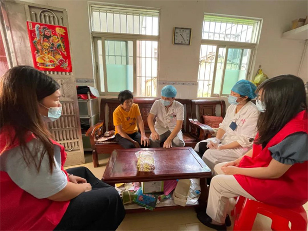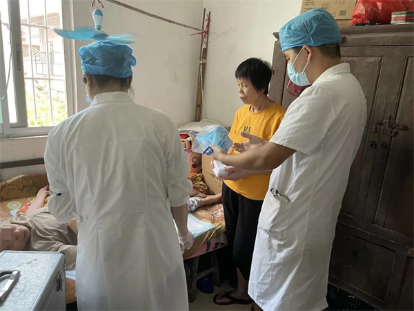 70多岁的伍老伯,三年前中风致残后,长期卧床失语,日常由儿子、儿媳照顾。在党员志愿者的积极协调下,六祖镇卫生院派出医护人员定期上门服务,跟踪病情,帮助老人提供康复训练,送医送药。