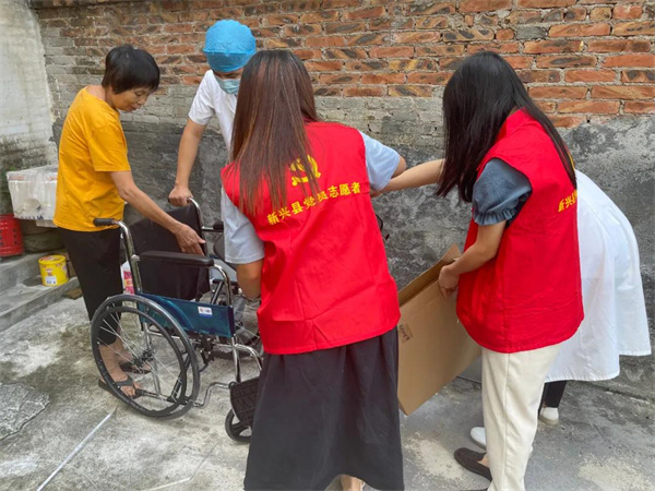 本来那张轮椅都坏了,正想要买新的,政府知道后及时送了一张新的过来,减少了我的负担,不用自己买。现在,医生又上门教我如何帮助老人康复的技术,很感谢镇委镇政府,多谢医生。