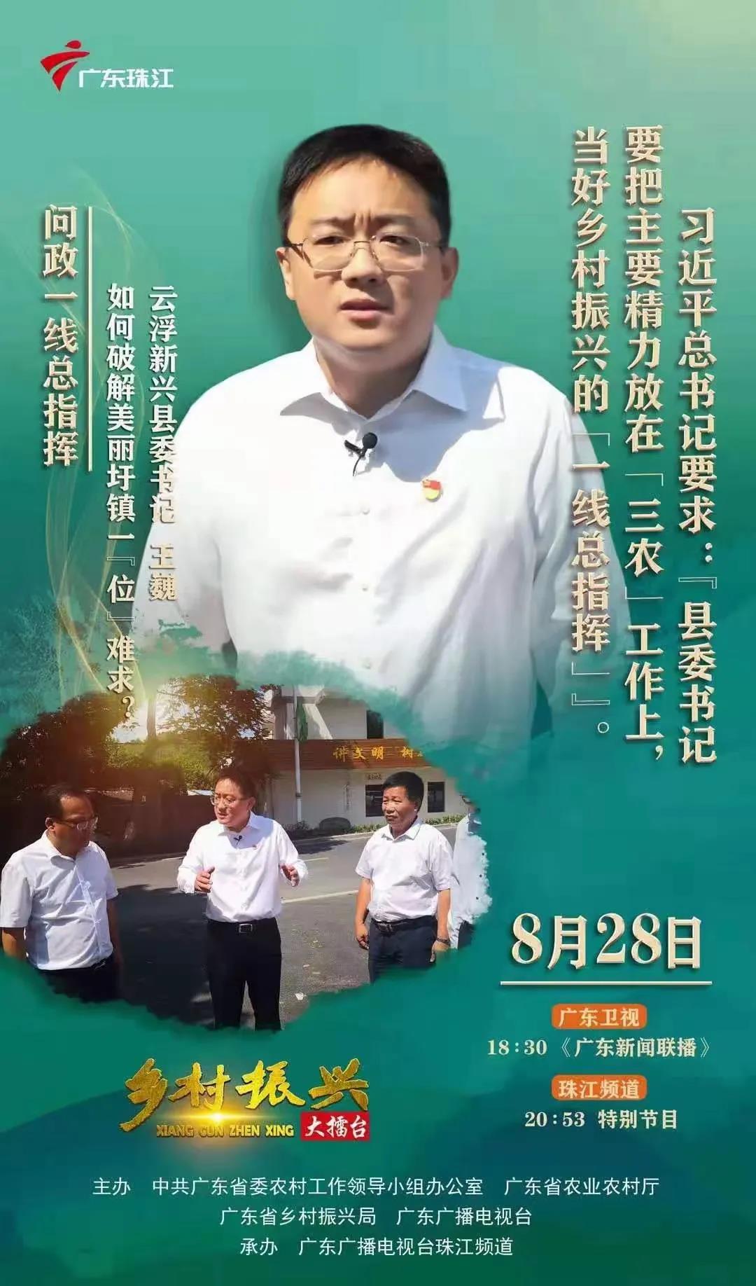 报道中,新兴县委书记王巍被采访,