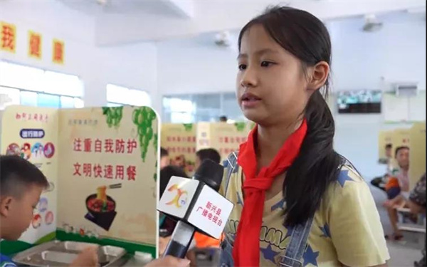 中午11点30分,记者在簕竹镇中心小学饭堂看到,准备午餐的同学在老师的组织下,有序排队领餐,色香味俱全的午餐深得孩子们的喜爱。