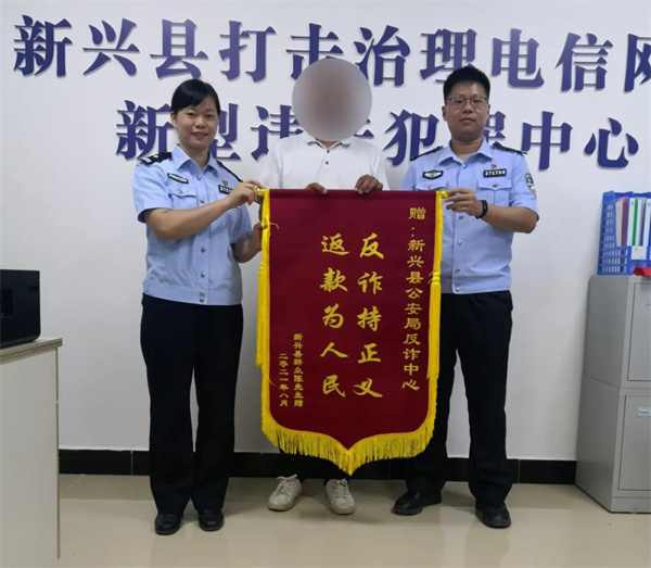近日,新兴县公安局成功为群众追回被骗资金超21万元人民币,群众送来锦旗3面以表谢意