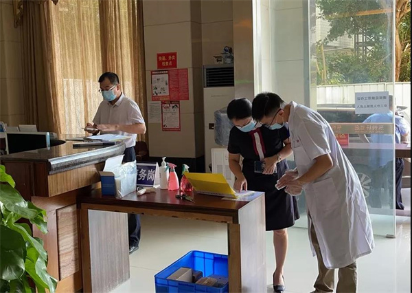 9月21日上午,县委副书记、政法委书记肖志坚、副县长梁志莲到县集中隔离场所东悦轩酒店调研并慰问节日期间在岗工作人员。
