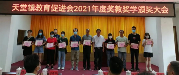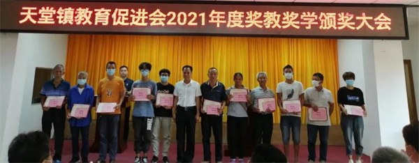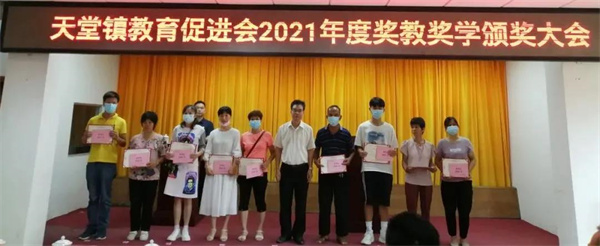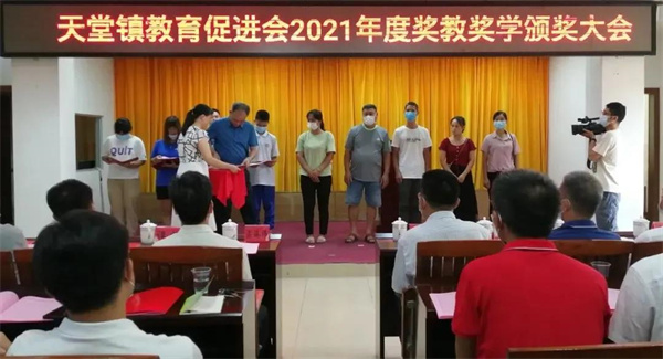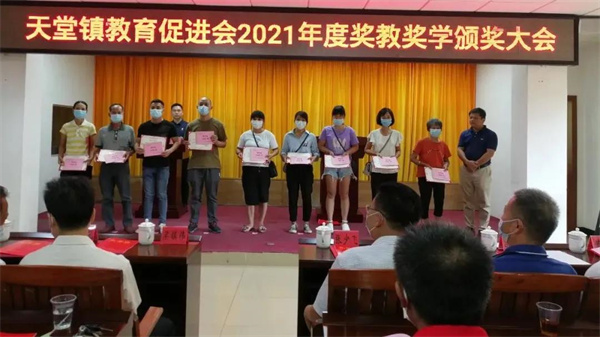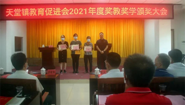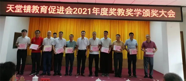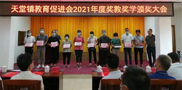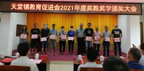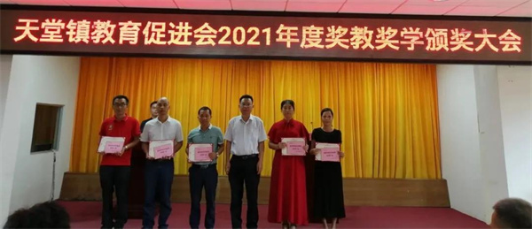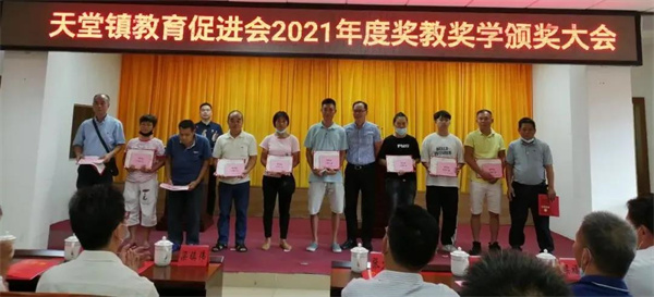 会上通报了2021年度天堂镇教育工作情况,向101名品学兼优学生、5名特别贡献获奖教师、10个优秀教师团队及两所获得综合评估奖三等奖的学校颁发了荣誉证书和奖金,共发放奖金25.34万元。