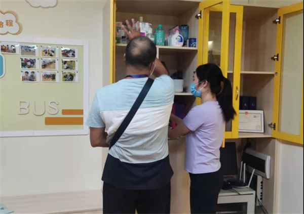 督查组共检查了15间托育机构,现场听取了托育机构相关负责人对疫情防控相关工作的情况汇报,查看机构的组织管理、疫情防控制度建设、防护物资储备、环境设施、人员管理、区域管理等工作资料,并对课室、厨房等重点场所、饮水消毒情况等进行评估。指导并督促各托育机构结合实际制订《突发公共卫生事件应急预案》和《新冠病毒疫情防控工作方案》。