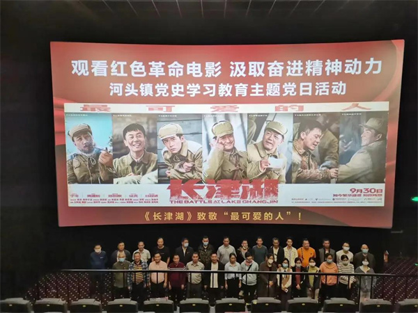 当天晚上,河头镇还组织各村(社区)及机关党员共同观看了抗美援朝题材电影《长津湖》,重温那段波澜壮阔的历史。3个小时的观影,全场党员的心情随着剧情变化而起伏跌宕,激烈的枪炮声带领着大家穿越到了那段战火纷飞的历史岁月中。在场的党员干部纷纷感慨,庆幸自己生于一个伟大而和平的国家,珍惜一切来之不易的幸福生活;感恩曾经为世界和平、中华民族的崛起而牺牲生命的英雄;并表示在今后的工作中要发扬敢于战斗的革命精神,坚定理想信念,不忘初心、砥砺前行,勇担新时代的使命任务,在奋力谱写河头镇高质量镇域经济发展的新篇章中贡献自身力量。