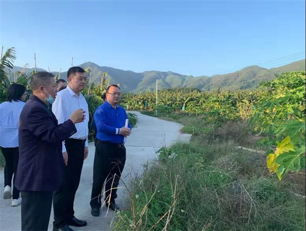 调研中,陈哲江一行先后来到河头镇步郎村、天堂镇内东村以及天堂镇乡村振兴驻镇帮镇扶村工作队办公室,通过实地察看以及听取相关负责人汇报,详细了解“四防三安全”工作落实,灌渠改造、农村集中供水全覆盖攻坚行动项目的施工及进展,内东粉蕉和水果木瓜种植示范基地产销,乡村振兴驻镇帮镇扶村工作等情况。 在河头镇步郎村,陈哲江看望慰问了村委干部并勉励他们要继续发扬不怕吃苦、勇于担当、无私奉献的优良作风,坚持人民至上、生命至上,紧扣“四防三安全”工作要求,精准发力,不折不扣落实各项措施,重点做好森林防火工作,层层落实森林防火工作责任,加强巡查管理,加大宣传力度,全面消除各类安全风险隐患,严防森林火灾发生;同时要坚持慎终如始,全力做好疫情防控工作,确保疫情“零发”金字招牌常态化。