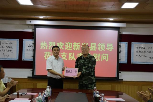 7月29日下午,在“八一”建军节即将来临之际,新兴县委、县政府组织慰问团开展慰问驻军活动,向部队官兵致以节日的祝贺和亲切的慰问。新兴县领导王巍、陈哲江、曾广伟、陈一萱、苏江毅、潘耀才、谷伟带领慰问团分别慰问了云浮军分区和武警云浮市支队。