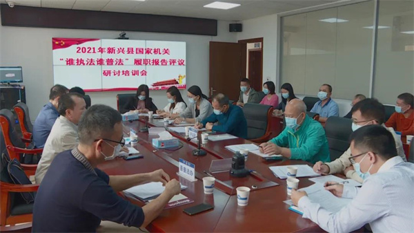 为确保2021年度新兴县国家机关“谁执法谁普法”履职报告评议活动顺利开展,客观考核评价我县国家机关开展普法工作情况,11月3日上午,我县在县司法局举行“谁执法谁普法”履职评议研讨培训班。