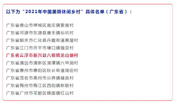 喜讯!新兴县六祖镇龙山塘村上榜“2021年中国美丽休闲乡村”公示名单!