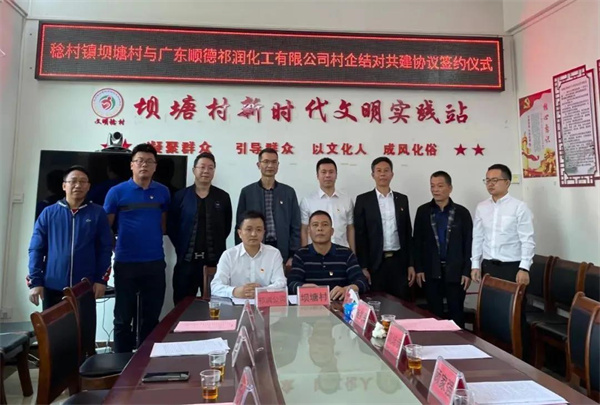今日广东顺德祁润化工有限公司和坝塘村签订村企共建结对协议,对于坝塘村产业振兴、人才振兴、文化振兴、生态振兴、组织振兴五大振兴起到积极的推动作用,希望我们更多的社会企业参与万企兴万村,共同推进乡村振兴。