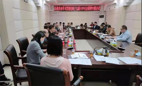 县政府办公室学习传达贯彻党的十九届六中全会精神会议