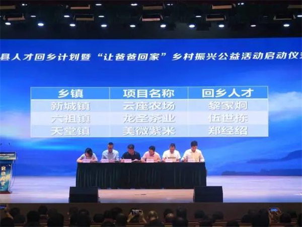 此外,新兴县着力搭建人才回乡全过程对接平台,营造人才想回来的创业环境和能成事的发展氛围。一方面,在广州、深圳等外出人才较多的城市建立外出人才联络处,在外出人才较多的地区设立外出人才党支部,建立完善外出人才联络平台,呼唤外出人才回乡。另一方面,依托县创新中心,市县共建云浮市人才驿站。在人才驿站设立大学生联谊会和青年就业创业促进会等平台,定期举办“让爸爸回家”乡村振兴公益活动、大学生返乡就业创业交流会等活动,架起与外出人才沟通桥梁,协助外出人才回乡创业就业。还组建新兴县人才回乡创业导师团,成立人才创业服务企业联盟,开发一批有针对性的培训项目,为外出人才回乡提供产学研、种养技术指导和政策支持。